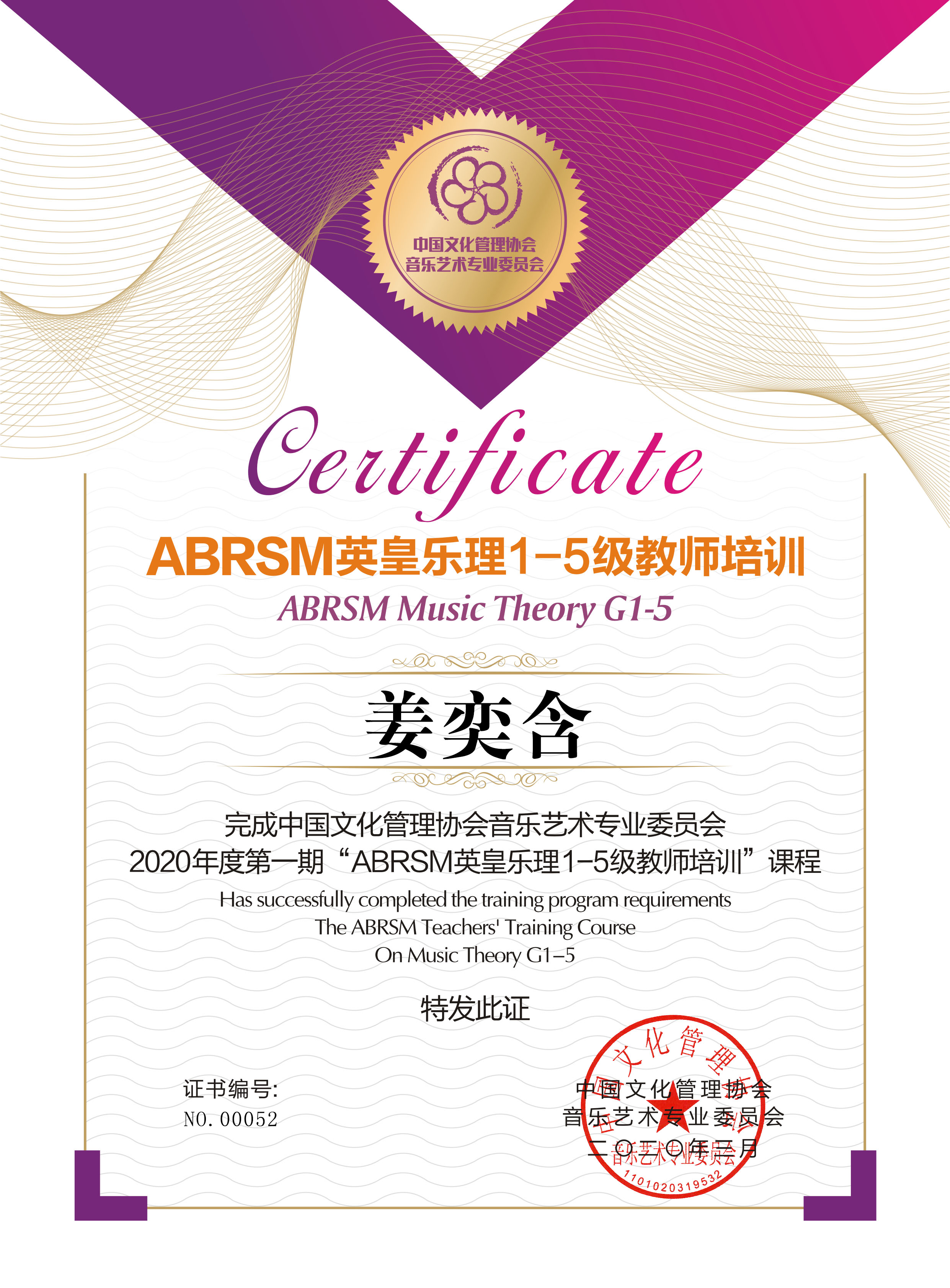 出席证书: